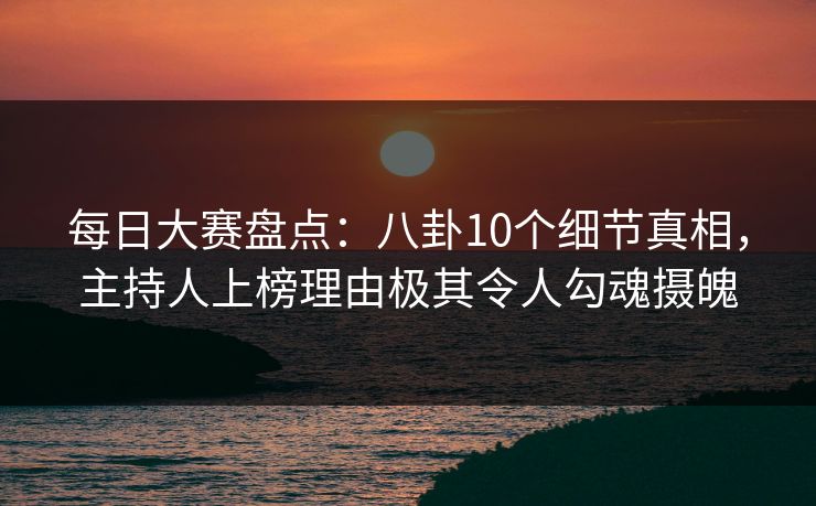 在纷繁复杂的娱乐圈,明星和主持人的每一个细节都像被放大镜捕捉的焦点,尤其是在每日大赛盘点中,那些不为人知的八卦细节总能激起粉丝和媒体的巨大兴趣。这一天,我们就带你一探究竟,解密背后隐藏的10个真相,究竟是哪些细节让主持人“上榜”,又为何这些细节能如此令人勾魂摄魄?