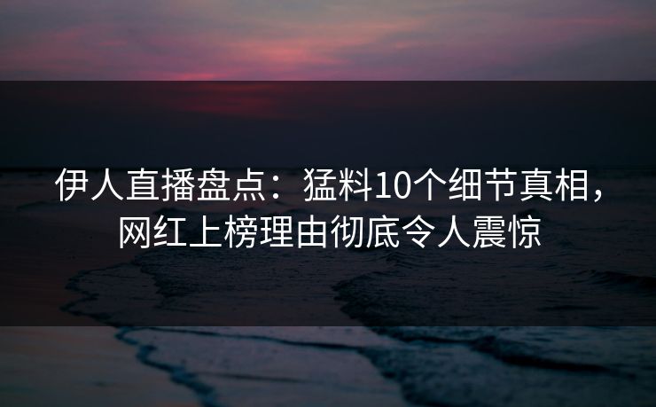 伊人直播盘点:猛料10个细节真相,网红上榜理由彻底令人震惊